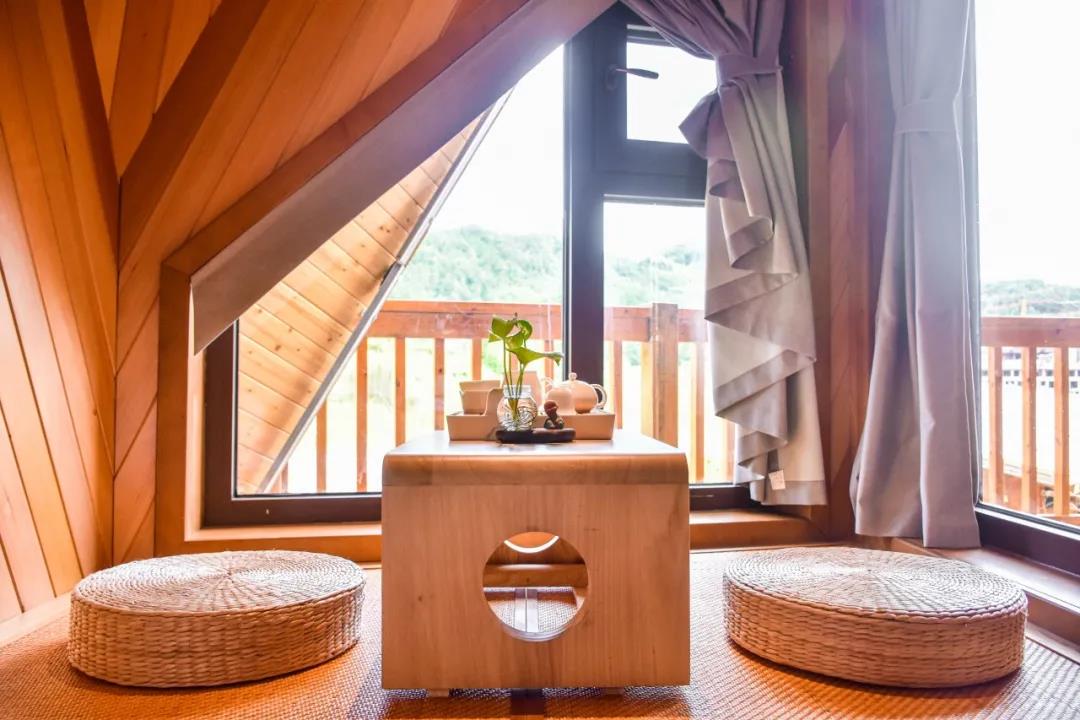 在木屋文化的發(fā)源地愛沙尼亞,木屋被稱為“同居住者共呼吸”的建筑。因為木屋結(jié)構(gòu)建筑通過合理設(shè)計與布局,適量吸收太陽光線,雨季還能調(diào)節(jié)室內(nèi)濕度。走進(jìn)客房內(nèi),便能聞到木材散發(fā)出富含芬多精的原木清香。角落里特設(shè)的榻榻米和精致茶臺,更是讓客人得以在迷人景致中舒坦心境,享受靜謐空間。
